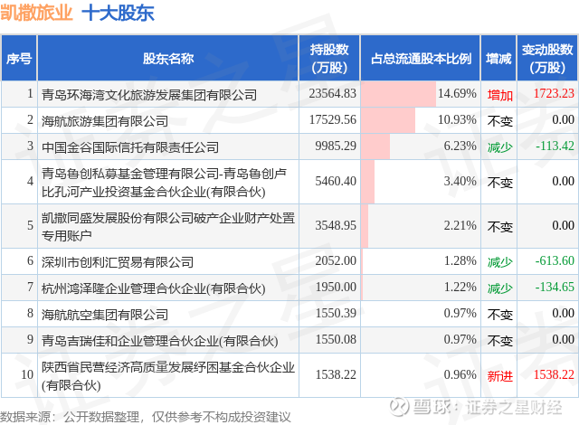 根据凯撒旅业2025年中报公布的十大股东详情如下: