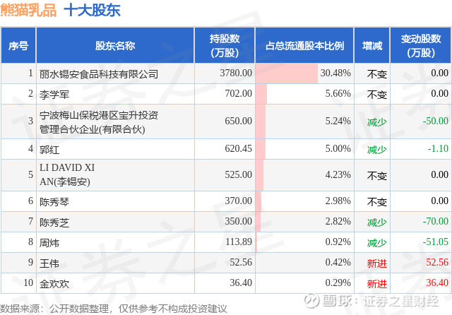 根据熊猫乳品2025年中报公布的十大股东详情如下: