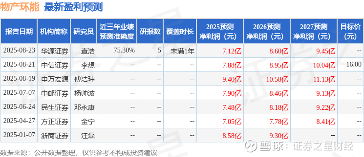 最新盈利预测明细如下: