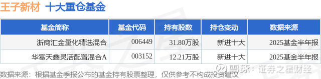 重仓王子新材的公募基金请见下表: