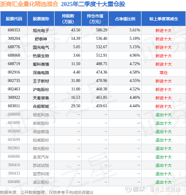 根据2025基金半年报公募基金重仓股数据,重仓该股的公募基金共2家,其中持有数量最多的公募基金为浙商证券资管的浙商汇金量化精选混合。浙商汇金量化精选混合目前规模为1.04亿元,最新净值1.514(9月5日),较上一交易日上涨7.26%,近一年下跌23.87%。该公募基金现任基金经理为庞雅菁。