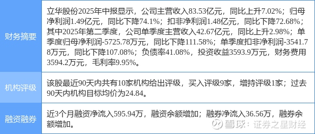 2025年8月21日,西南证券研究员徐卿,赵磐发布了对立华股份的研报《2025年中报点评:黄羽鸡承压,生猪业务量利齐升成业绩亮点》,该研报对立华股份给出“买入”评级。研报中预计2025-2027年EPS分别为1.13元、2.12元、2.41元,对应动态PE分别为18/10/8倍,维持“买入”评级。证券之星数据中心根据近三年发布的研报数据计算,该研报作者对此股的盈利预测准确度为39.63%。
