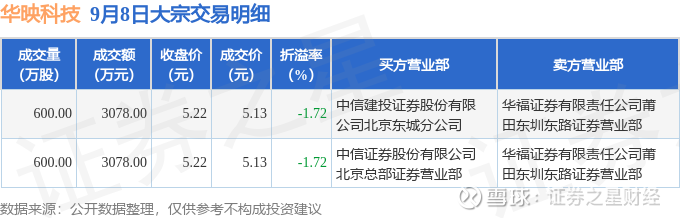证券之星消息,9月8日华映科技发生大宗交易,交易数据如下: