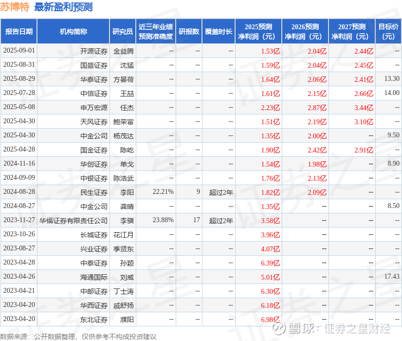 最新盈利预测明细如下: