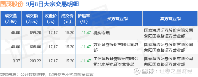 证券之星消息,9月8日国茂股份发生大宗交易,交易数据如下: