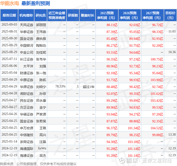 中原证券股份有限公司陈拓近期对华能水电进行研究并发布了研究报告《中报点评:TB、硬梁包水电站投产带动公司业绩增长》,给予华能水电买入评级。