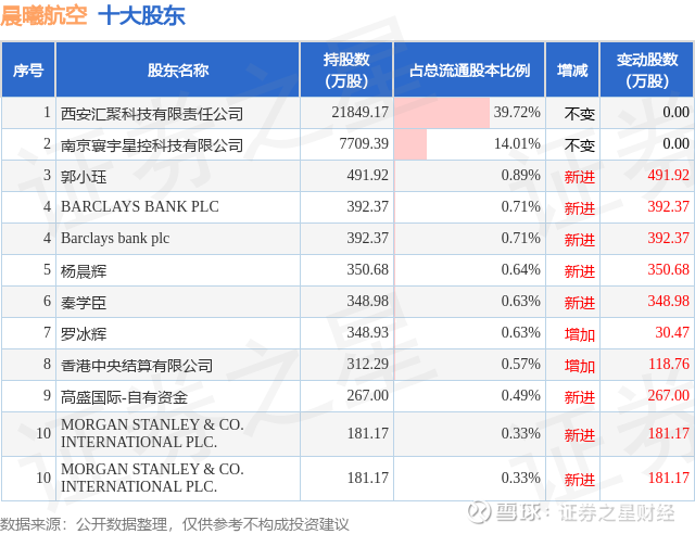 根据晨曦航空2025年中报公布的十大股东详情如下: