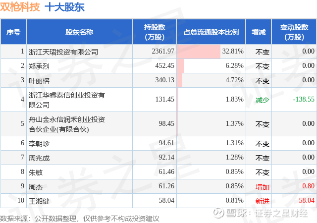 根据双枪科技2025年中报公布的十大股东详情如下: