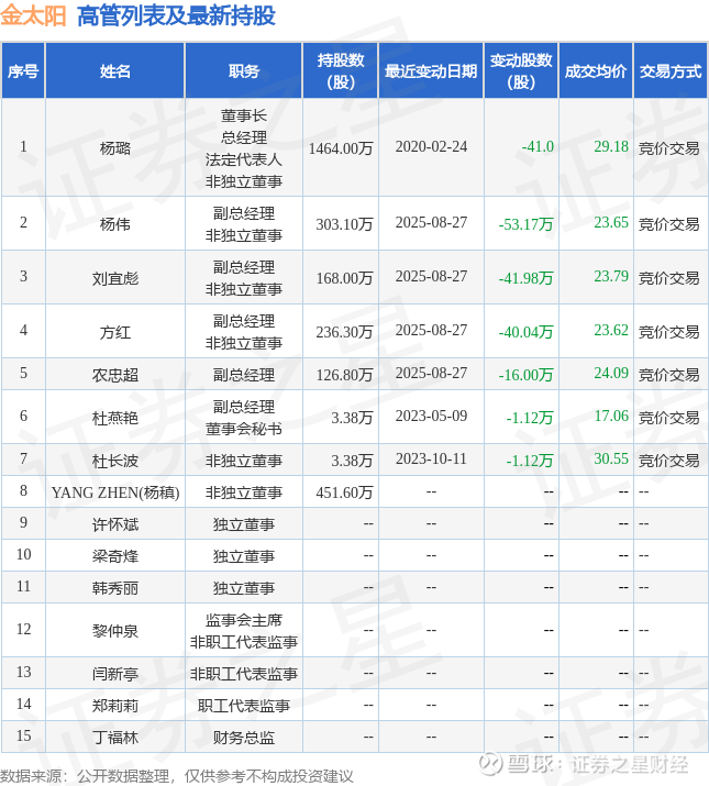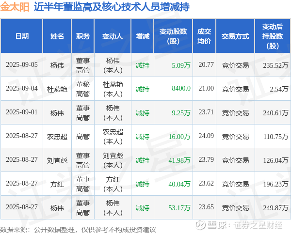 金太阳近半年内的董监高及核心技术人员增减持详情如下:
