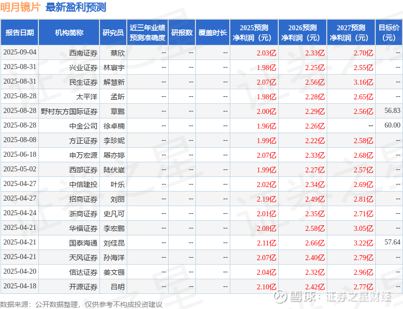 明月镜片(301101) 公司发布2025半年度报告 25Q2公司营收2.0亿,同增4.71%;归母净利0.48亿,同增3.42%;扣非归母净利0.41亿,同增1.1%; 25H1公司营收4.0亿,同增3.68%;归母净利0.96亿,同增7.35%;扣非归母净利0.83亿,同增9.6%。 25H1毛利率57.9%,同比-1.5pct;归母净利率23.9%,同比+0.8pct。 镜片经营具韧性,产品/渠道结构持续升级 25H1公司镜片营收3.33亿,同增4.23%,毛利率62.40%,同比-1.08pct;剔除海外业务的不利影响,2025H1镜片业务较去年同期增长5.4%,在外部环境承压、价格战加剧的影响下保持了充分的韧性,受益于产品聚焦策略,大单品依然保持增长趋势,尤其是PMC超亮系列产品2025年上半年收入较同期增长31.77%,三大明星产品的收入在常规镜片收入中占比为55.8%。 2025H1“轻松控”系列产品销售额为8167万元,同比增长7.32%;剔除产品升级召回上一代产品带来的影响后,2025H1“轻松控”系列产品销售额为9012万元,同比增长18.4%。2025H1明月全新升级的1.74系列产品获得消费者和客户的热烈反馈,销售快速提升,较去年同期增长258%。 截至25年6月末零售渠道共有18个SKU,医疗渠道共有18个SKU,公司在近视管理镜片品类已有合计36个SKU同时在售,在产品线丰富度方面继续保持明显领先 25H1分渠道看,直营收入2.38亿,占总59.43%;经销收入1.33亿,占总33.24%。截至2025年6月末,公司直销客户2214家(含医疗渠道)、“明月”品牌经销客户69家,客户结构持续优化。 率先布局智能眼镜,合作版图加速扩展 随着AI眼镜市场快速发展,明月镜片凭借在高折射率材料、多功能膜层及智能制造上的深厚积淀,成为小米AI眼镜官方独家光学镜片供应商:打破海外垄断、依托自研1.71高折射率树脂单体,在600度、60mm直径规格下将单片重量控制在12.4g,显著减轻整机佩戴负担;镜片阿贝数达37,显著优于行业主流32–33水平,实现轻薄与高清兼得;内置光敏因子0.8秒极速变色,满足全天候场景切换;并同步上线数码清亮、高清高透、清底防蓝光、抗疲劳、渐进等全系列镜片,通过小米有品商城及全国400余家授权门店完成线上线下一体化交付。公司以可靠的技术与规模交付能力、稳定优质的产品品质,夯实了在智能穿戴光学供应链中的战略地位,并为未来拓展更多消费电子品牌奠定坚实基础。 调整盈利预测,维持“增持”评级 公司产品及客户结构优化明显,镜片领域独家合作有望进一步增强品牌优势与产品优势。基于公司25H1业绩表现,考虑外部经营环境仍承压,我们调整盈利预测,预计公司25-27年归母净利润分别为2.0/2.3/2.6亿元(原值为2.1/2.4/2.8亿元),对应PE为48/42/37X。 风险提示:宏观经济环境风险;主要原材料价格波动风险;经销商管理风险