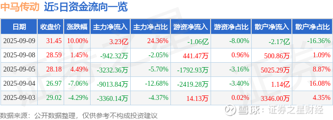 9月9日的资金流向数据方面,主力资金净流入3.23亿元,占总成交额24.36%,游资资金净流出1.06亿元,占总成交额8.0%,散户资金净流出2.17亿元,占总成交额16.36%。