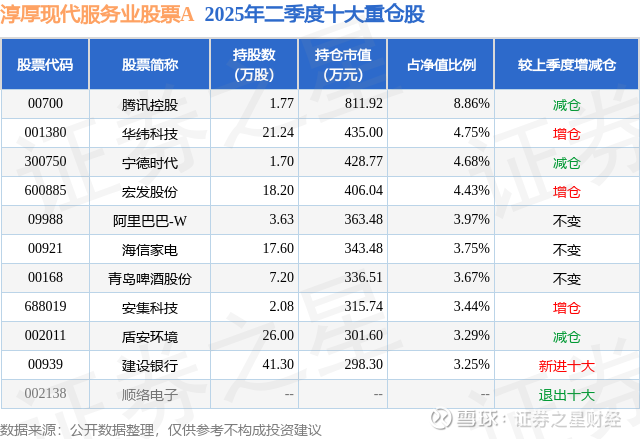 根据2025基金半年报公募基金重仓股数据,重仓该股的公募基金共1家,其中持有数量最多的公募基金为淳厚基金的淳厚现代服务业股票A。淳厚现代服务业股票A目前规模为0.74亿元,最新净值1.2873(9月8日),较上一交易日上涨1.59%,近一年上涨45.51%。该公募基金现任基金经理为顾伟。顾伟在任的基金产品包括:淳厚欣颐一年持有期混合,管理时间为2022年10月27日至今,期间收益率为31.13%;