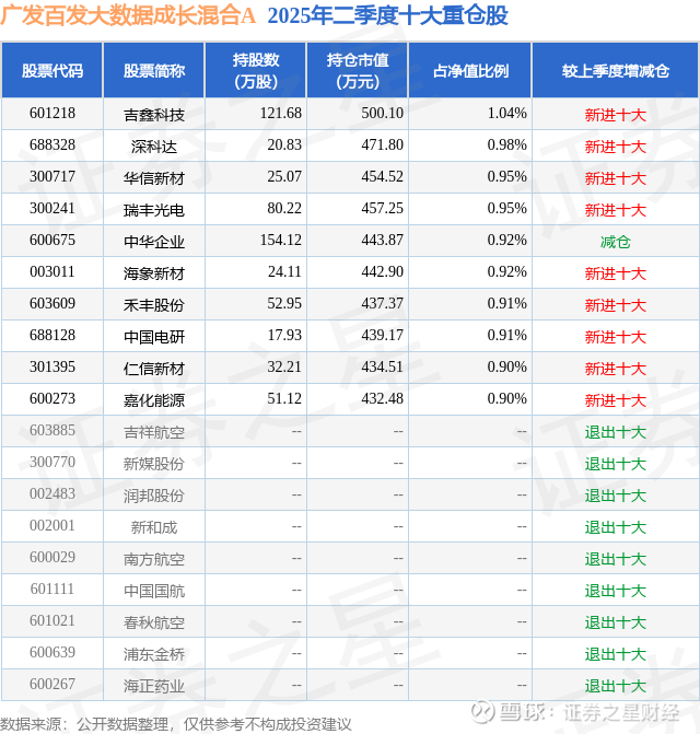 根据2025基金半年报公募基金重仓股数据,重仓该股的公募基金共1家,其中持有数量最多的公募基金为广发基金的广发百发大数据成长混合A。广发百发大数据成长混合A目前规模为4.08亿元,最新净值1.614(9月8日),较上一交易日上涨1.38%,近一年上涨53.13%。该公募基金现任基金经理为叶帅。叶帅在任的基金产品包括:广发估值优势混合A,管理时间为2025年3月6日至今,期间收益率为18.35%;广发北交所精选两年定开混合A,管理时间为2025年7月24日至今,期间收益率为16.13%。