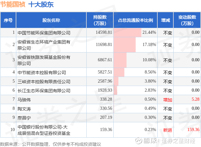 根据节能国祯2025年中报公布的十大股东详情如下: