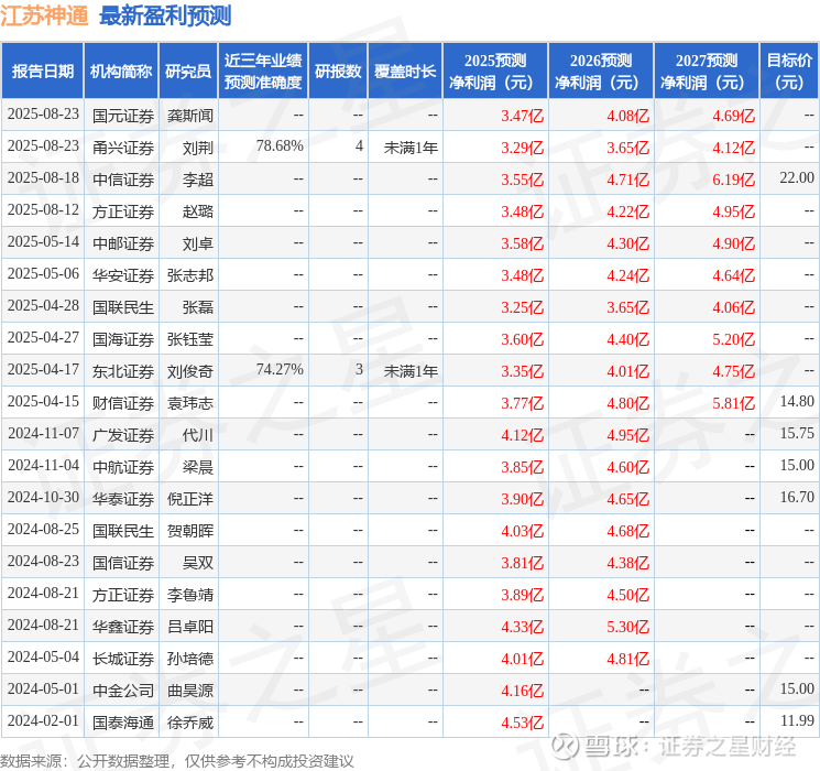 华安证券股份有限公司张志邦,王璐,徒月婷近期对江苏神通进行研究并发布了研究报告《2025H1核电业务收入同比+16%,在手订单充足》,给予江苏神通增持评级。