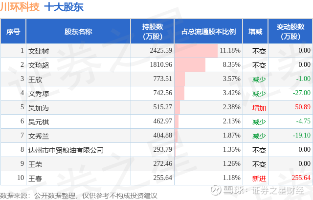 证券之星消息,9月9日川环科技发布公告《川环科技:关于股东股份减持计划期限届满暨实施情况的公告》,其股东文秀兰、文秀琼、文建树于2025年6月24日至2025年7月10日间合计减持158.93万股,占公司目前总股本的0.7328%,变动期间该股股价上涨7.01%,截止7月10日收盘报29.0元。