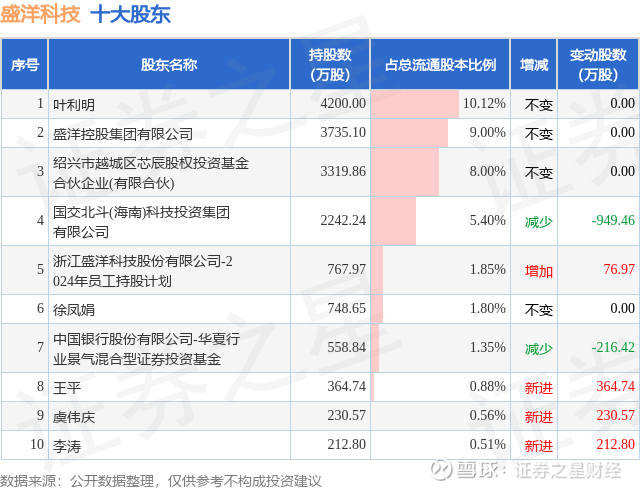 根据盛洋科技2025年中报公布的十大股东详情如下: