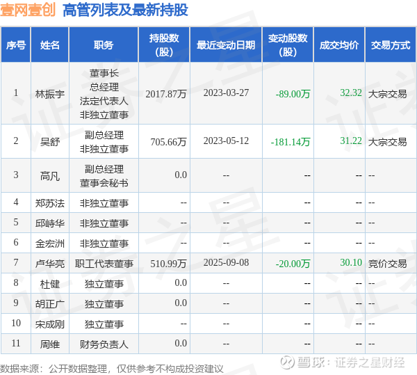 壹网壹创近半年内的董监高及核心技术人员增减持详情如下: