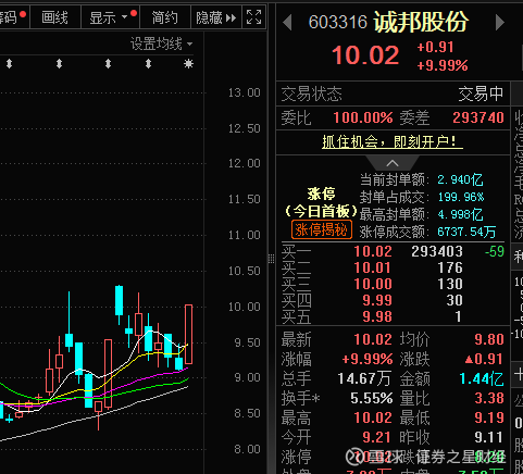 9月10日,A股AI产业链个股迎来强势表现,诚邦股份(603316)股价实现涨停。