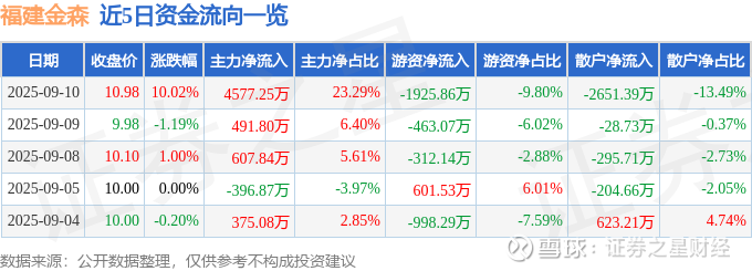 9月10日的资金流向数据方面,主力资金净流入4577.25万元,占总成交额23.29%,游资资金净流出1925.86万元,占总成交额9.8%,散户资金净流出2651.39万元,占总成交额13.49%。
