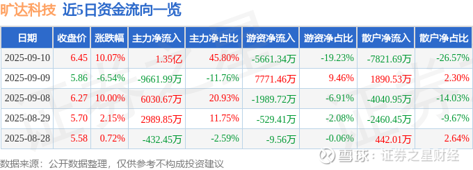 9月10日的资金流向数据方面,主力资金净流入1.35亿元,占总成交额45.8%,游资资金净流出5661.34万元,占总成交额19.23%,散户资金净流出7821.69万元,占总成交额26.57%。