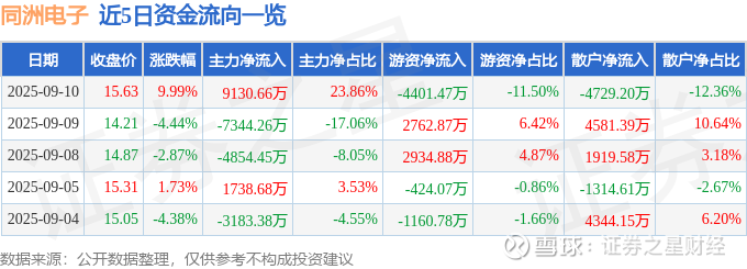 9月10日的资金流向数据方面,主力资金净流入9130.66万元,占总成交额23.86%,游资资金净流出4401.47万元,占总成交额11.5%,散户资金净流出4729.2万元,占总成交额12.36%。