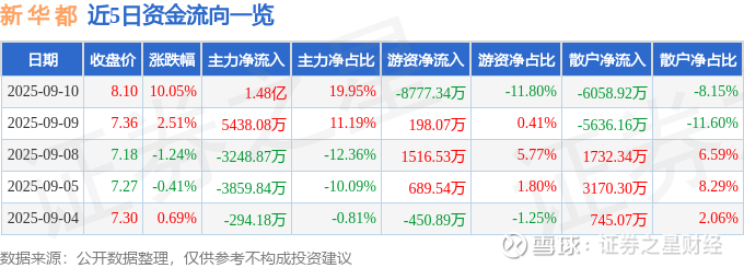 证券之星消息,新 华 都9月10日涨停收盘,收盘价8.1元。该股于9点30分涨停,4次打开涨停,截止收盘封单资金为6282.95万元,占其流通市值1.18%。