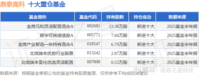根据2025基金半年报公募基金重仓股数据,重仓该股的公募基金共5家,其中持有数量最多的公募基金为金鹰基金的金鹰元和灵活配置混合A。金鹰元和灵活配置混合A目前规模为0.51亿元,最新净值1.2703(9月9日),较上一交易日下跌0.94%,近一年上涨39.46%。该公募基金现任基金经理为倪超。倪超在任的基金产品包括:金鹰行业优势混合A,管理时间为2015年6月11日至今,期间收益率为48.3%;金鹰鑫瑞混合A,管理时间为2020年9月25日至今,期间收益率为30.19%;金鹰年年邮享一年持有债券A,管理时间为2021年11月25日至今,期间收益率为8.99%。