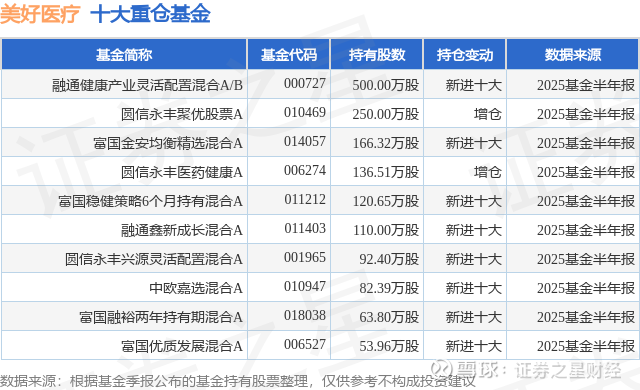 根据2025基金半年报公募基金重仓股数据,重仓该股的公募基金共18家,其中持有数量最多的公募基金为融通基金的融通健康产业灵活配置混合A/B。融通健康产业灵活配置混合A/B目前规模为20.74亿元,最新净值2.989(9月9日),较上一交易日下跌1.52%,近一年上涨42.95%。该公募基金现任基金经理为万民远。万民远在任的基金产品包括:融通鑫新成长混合A,管理时间为2021年10月8日至今,期间收益率为49.85%;融通价值成长混合A,管理时间为2022年7月18日至今,期间收益率为41.27%;融通医疗保健行业混合A/B,管理时间为2023年3月15日至今,期间收益率为-12.18%。