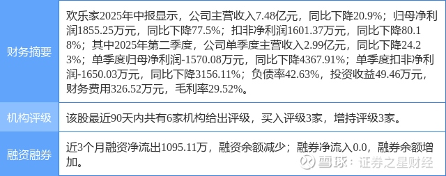2025年9月6日,华鑫证券研究员孙山山,张倩发布了对欢乐家的研报《公司事件点评报告:营销改革业绩承压,多措并举积极求变》,该研报对欢乐家给出“买入”评级。证券之星数据中心根据近三年发布的研报数据计算,该研报作者对此股的盈利预测准确度为28.24%。