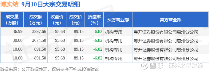 证券之星消息,9月10日博实结发生大宗交易,交易数据如下: