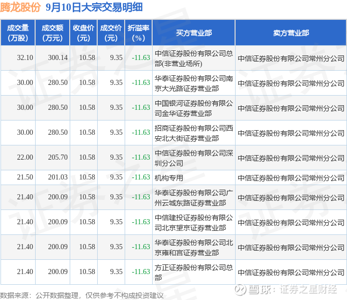 证券之星消息,9月10日腾龙股份发生大宗交易,交易数据如下: