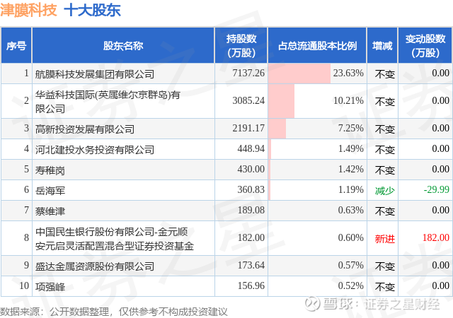 根据津膜科技2025年中报公布的十大股东详情如下:
