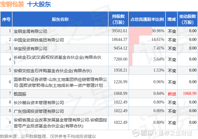 根据宝钢包装2025年中报公布的十大股东详情如下: