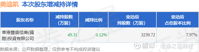 证券之星消息,9月10日美迪凯发布公告《美迪凯:杭州美迪凯光电科技股份有限公司关于持股5%以上股东权益变动触及1%刻度的提示性公告》,其股东香港豐盛佳美(國際)投資有限公司于2025年9月9日合计减持49.31万股,占公司目前总股本的0.1212%,变动期间该股股价下跌4.23%,截止9月9日收盘报11.78元。