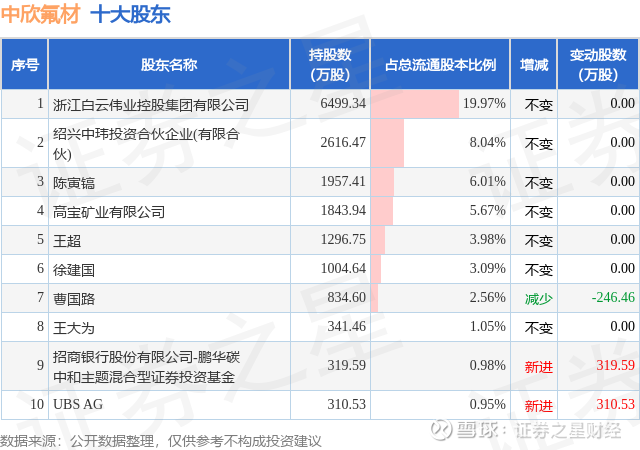 根据中欣氟材2025年中报公布的十大股东详情如下: