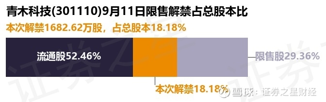 证券之星消息,根据市场公开信息整理,青木科技(301110)于9月11日将有1682.62万股限售股份解禁,为公司追加承诺限售股份上市流通,占公司总股本18.18%。(本次数据根据历史公告整理得出,实际情况以上市公司最新公告为准)本次解禁后,公司还有2716.88万股限售股份,占总股本29.36%。具体如下图所示: