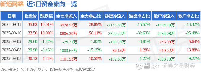 证券之星消息,新炬网络9月11日涨停收盘,收盘价35.82元。该股于9点25分涨停,未打开涨停,截止收盘封单资金为3.62亿元,占其流通市值6.22%。