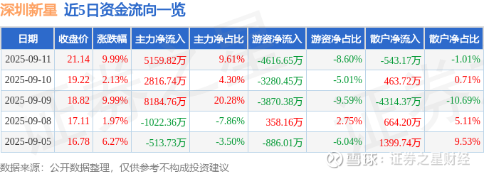 证券之星消息,深圳新星9月11日涨停收盘,收盘价21.14元。该股于10点38分涨停,未打开涨停,截止收盘封单资金为3013.93万元,占其流通市值0.68%。