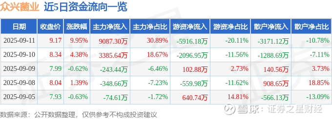 9月11日的资金流向数据方面,主力资金净流入9087.3万元,占总成交额30.89%,游资资金净流出5916.18万元,占总成交额20.11%,散户资金净流出3171.12万元,占总成交额10.78%。