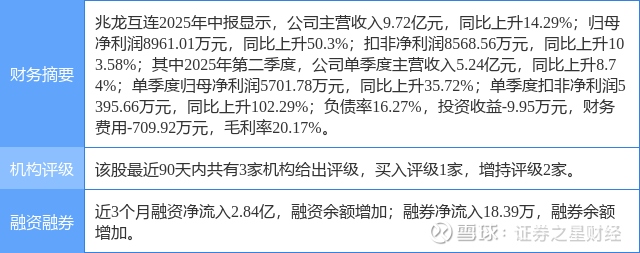 2025年9月1日,中国银河研究员赵良毕,王思宬发布了对兆龙互连的研报《2025年中报业绩点评:业绩略超预期,高速铜缆高成长可期》,该研报对兆龙互连给出“买入”评级。研报中预测公司2025/2026/2027年将实现营收22.45/29.26/40.13亿元,同增22.57%/30.36%/37.14%;将实现归母净利润分别为1.87/3.21/5.09亿元,同增22.26%/71.83%/58.34%,对应2025/2026/2027年PE分别为104.72/60.95/38.49倍,结合公司业绩趋势,维持对公司的“推荐”评级。证券之星数据中心根据近三年发布的研报数据计算,该研报作者对此股的盈利预测准确度为53.45%。