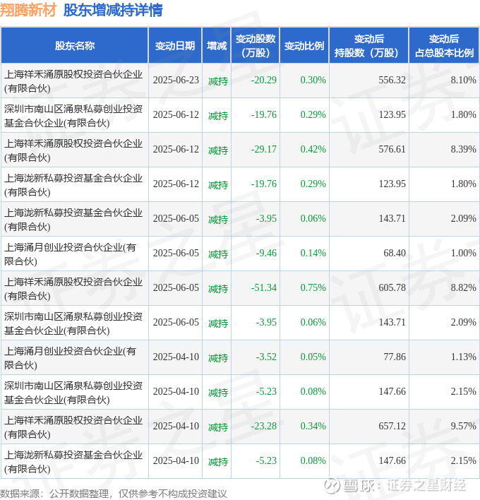 该股近半年内有股东持股变动,合计净减持194.93万股,股东增减持明细如下表: