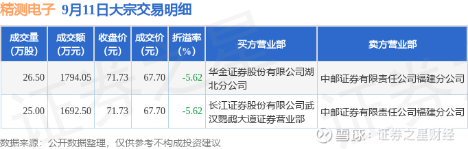 证券之星消息,9月11日精测电子发生大宗交易,交易数据如下:
