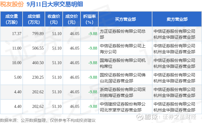 证券之星消息,9月11日税友股份发生大宗交易,交易数据如下: