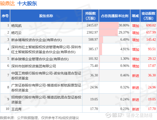 根据骏鼎达2025年中报公布的十大股东详情如下: