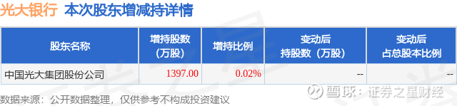 证券之星消息,9月11日光大银行发布公告《光大银行:中国光大银行股份有限公司关于控股股东增持股份计划进展的公告》,其股东中国光大集团股份公司于2025年4月8日至2025年9月11日间合计增持1397.0万股,占公司目前总股本的0.0236%,变动期间该股股价上涨3.06%,截止9月11日收盘报3.7元。