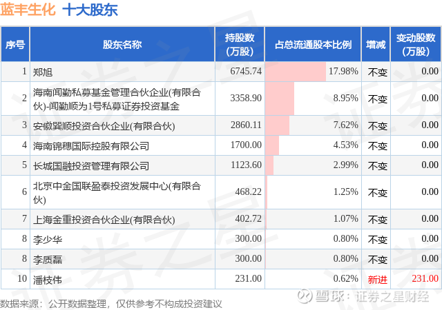 根据蓝丰生化2025年中报公布的十大股东详情如下: