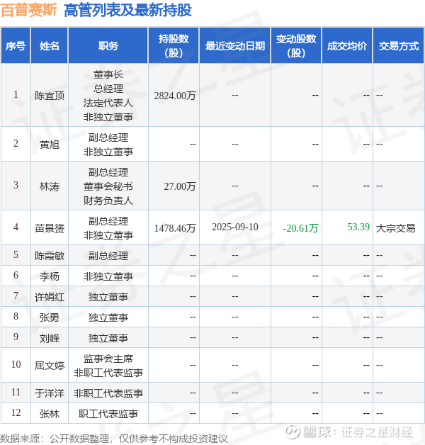 百普赛斯的高管列表及最新持股情况如下: