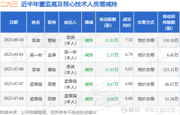 二六三近半年内的董监高及核心技术人员增减持详情如下: