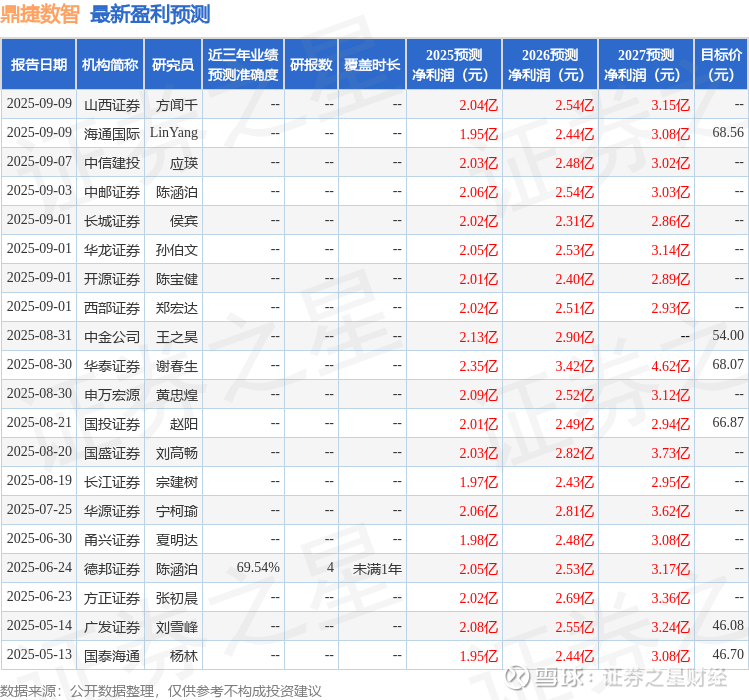 最新盈利预测明细如下: